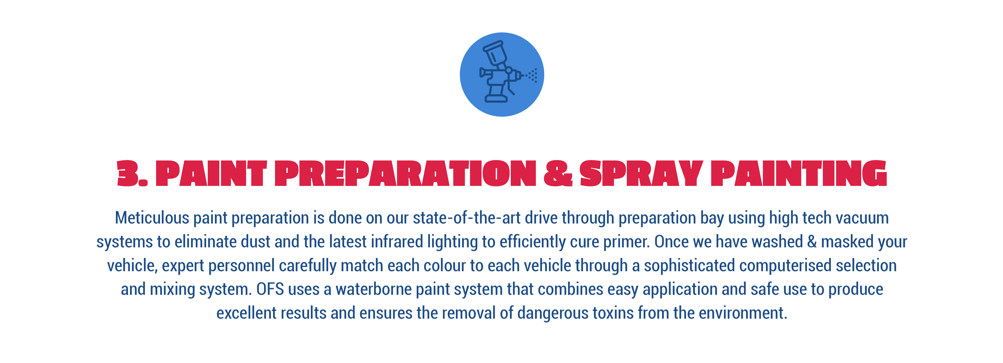 OFS Smart Repair uses an original manufacturer waterborne paint system that combines easy application, safe use and especially efficient work to produce excellent refinishing results – while meeting the latest environmental standards. Each colour is meticulously matched to each vehicle through a computerised selection and mixing system.